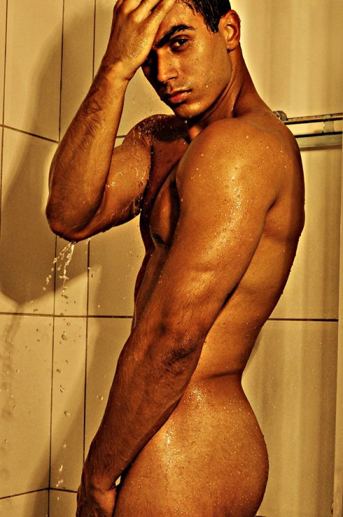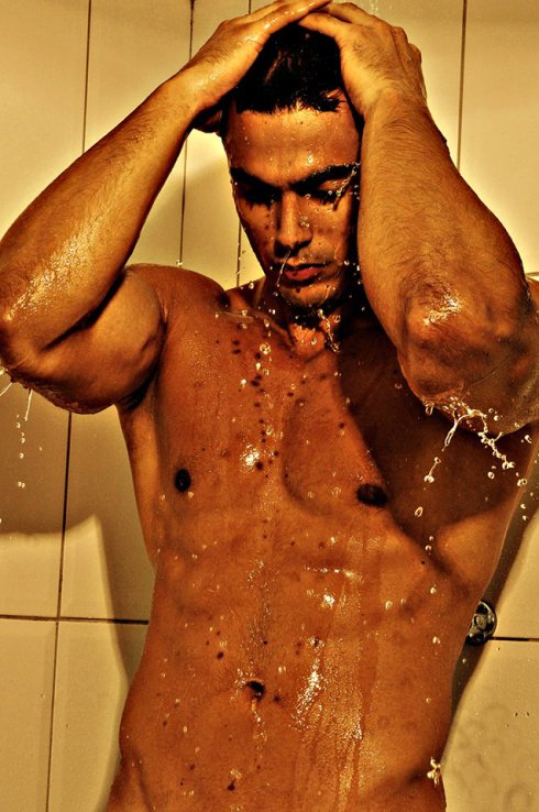 Sexy photoshoot with Brazilian hunk male model Davidson Loiola all of it taking a hot bath. Photography Marcos Puga, design and production of Petrone.